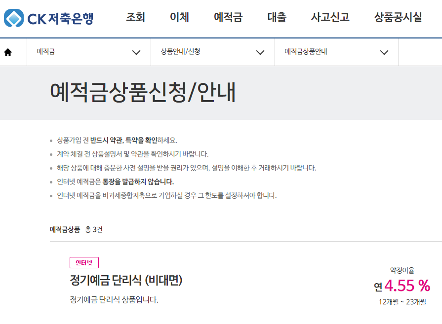 인터넷, 스마트폰 비대면으로 CK저축은행 저축은행 정기예금을 신청할 수 있습니다.