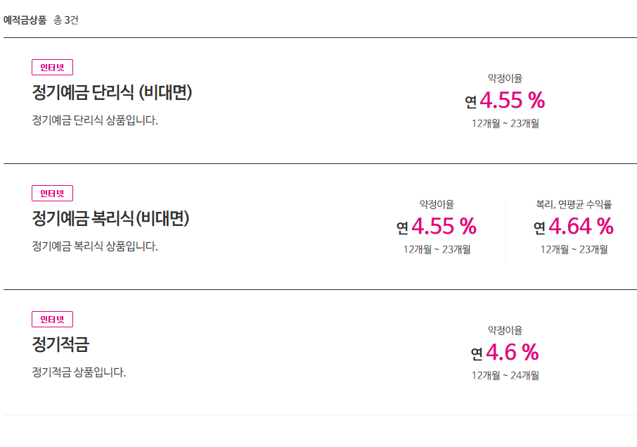 다음은 이자율을 비교하여 높은 이자를 주는 상품 확인이 가능합니다.