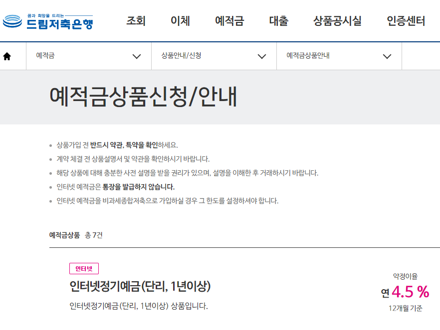 목돈 굴리기 고금리 예금을 확인이 가능합니다. 드림저축은행 인터넷 정기예금입니다.